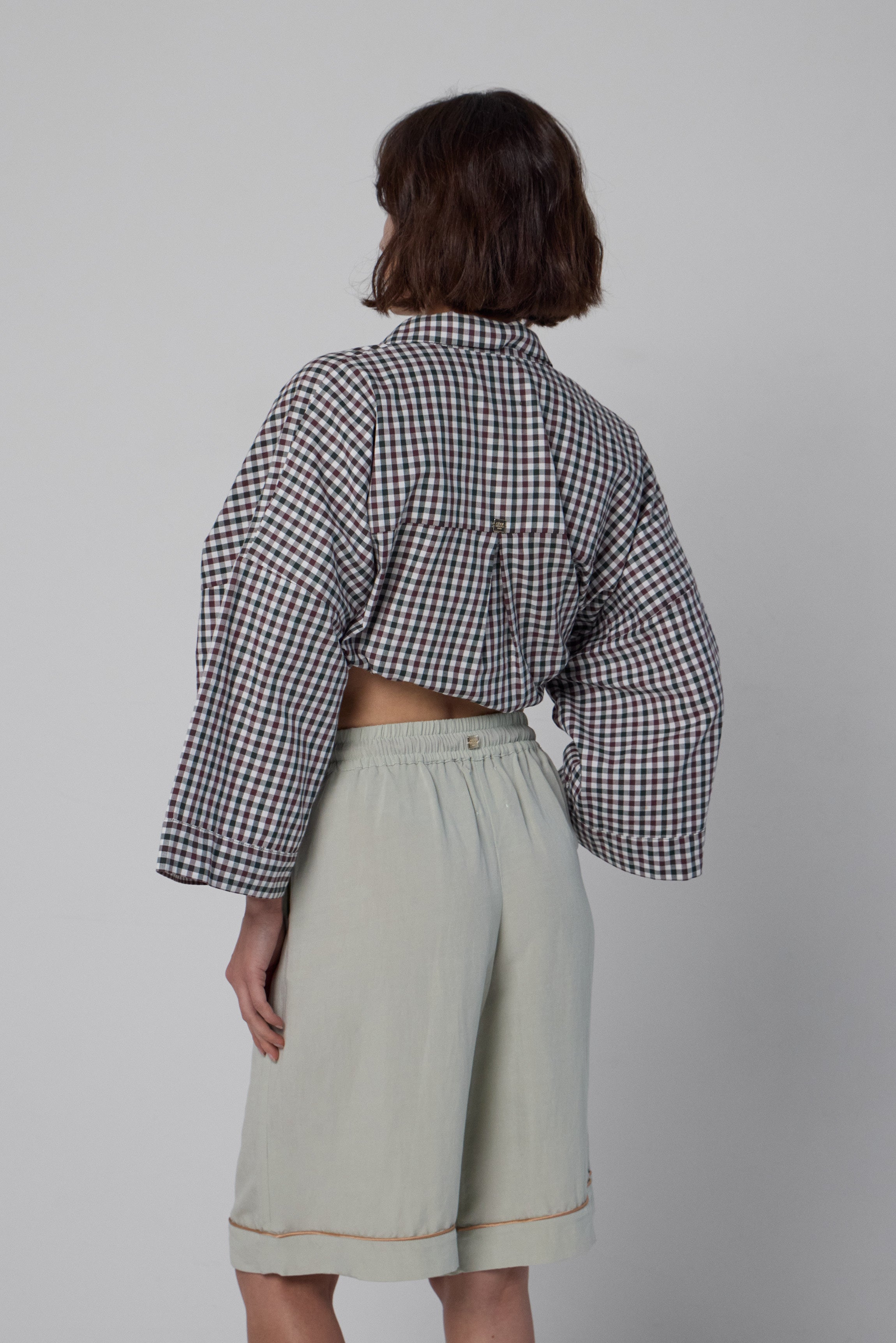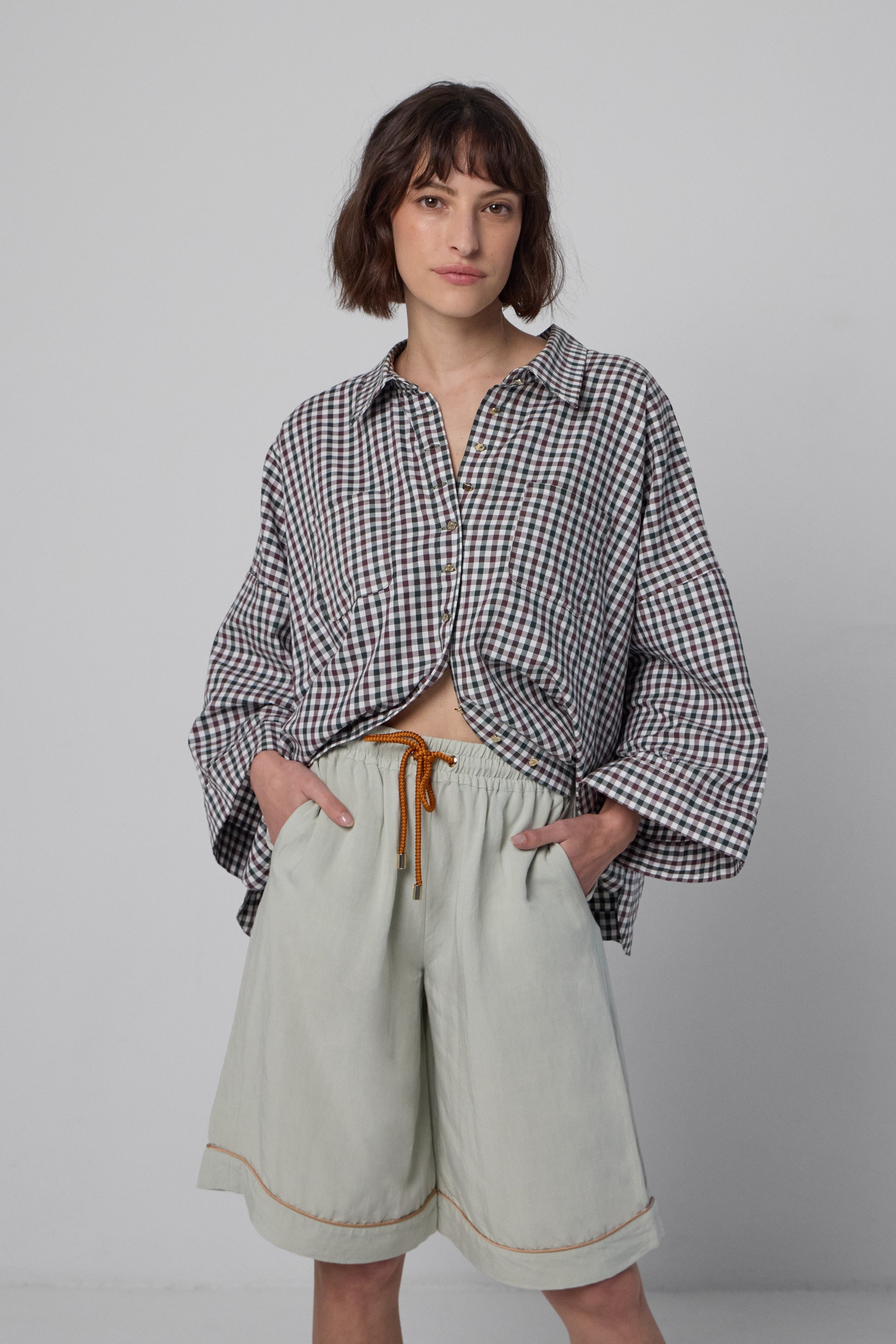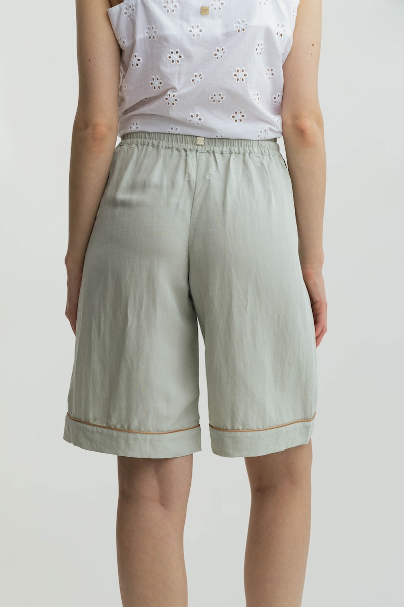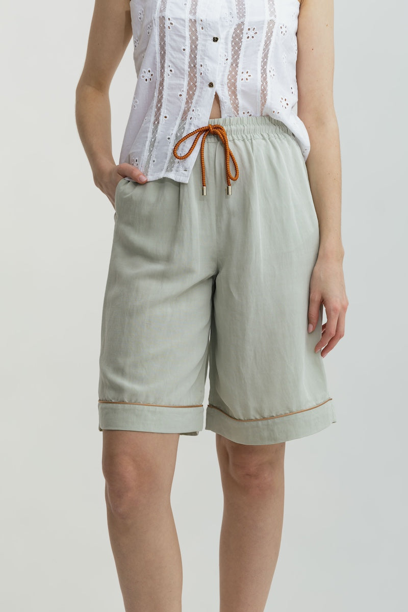 Le bermuda Belma a une longueur qui s’arrête juste au dessus du genou. Il a deux poches et peut vous accompagner durant vos journées comme dans vos soirées. Sa taille est élastique et réglable par des cordons. De légères surpiqures rajoutent du détail sur le bas. Il pourra être associé à notre chemisette Billie ou au kimono Brigitte.