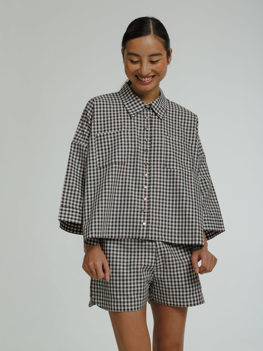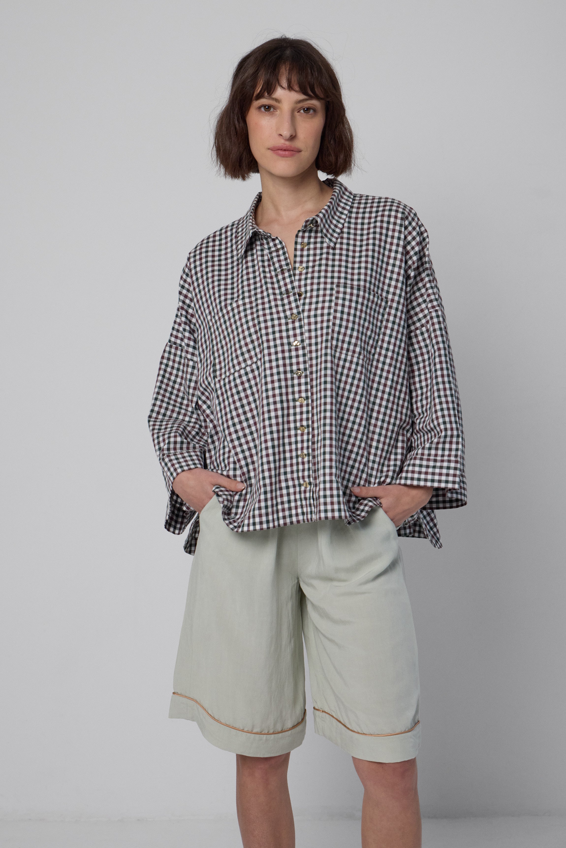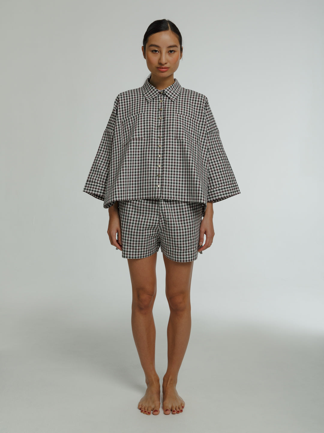 La chemise Brighton est un vêtement de nuit moderne et confortable. Disposant de manches 3/4, sa coupe ultra oversize, courte et masculine est mise en valeur par des boutons dorés pour une touche d'élégance tout en subtilité. La chemise Byron comporte également deux poches plaquées sur les côtés et une plaque en métal doré, estampillée Charmée Paris. Versatile, cette pièce réalisée 100% en coton au toucher doux à petits carreaux, se porte à l'interieur comme à l'extérieur pour un style "effortless" à la parisienne. Afin de prolonger la durabilité de votre vêtement, nous préconisons un lavage doux, sur l’envers et de préférence fermé afin de préserver au mieux toutes les fournitures en métal et cordons. |