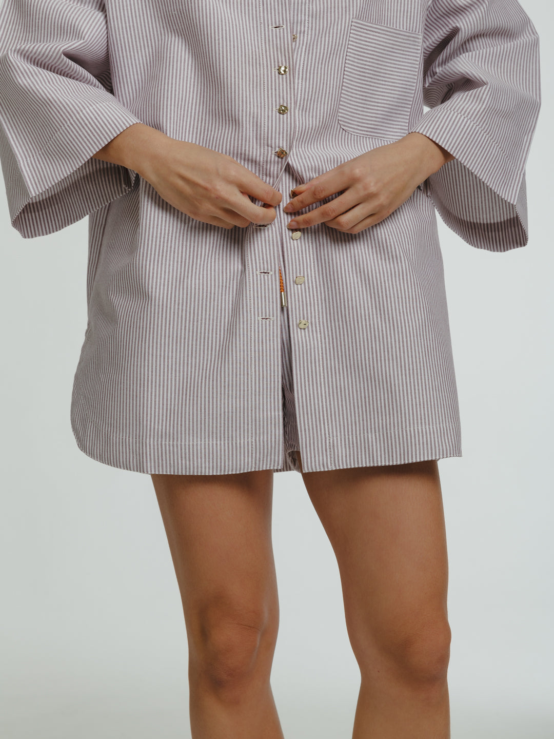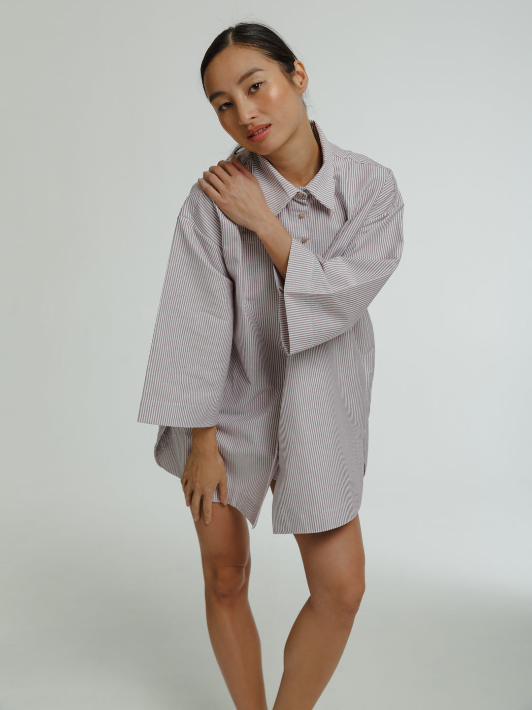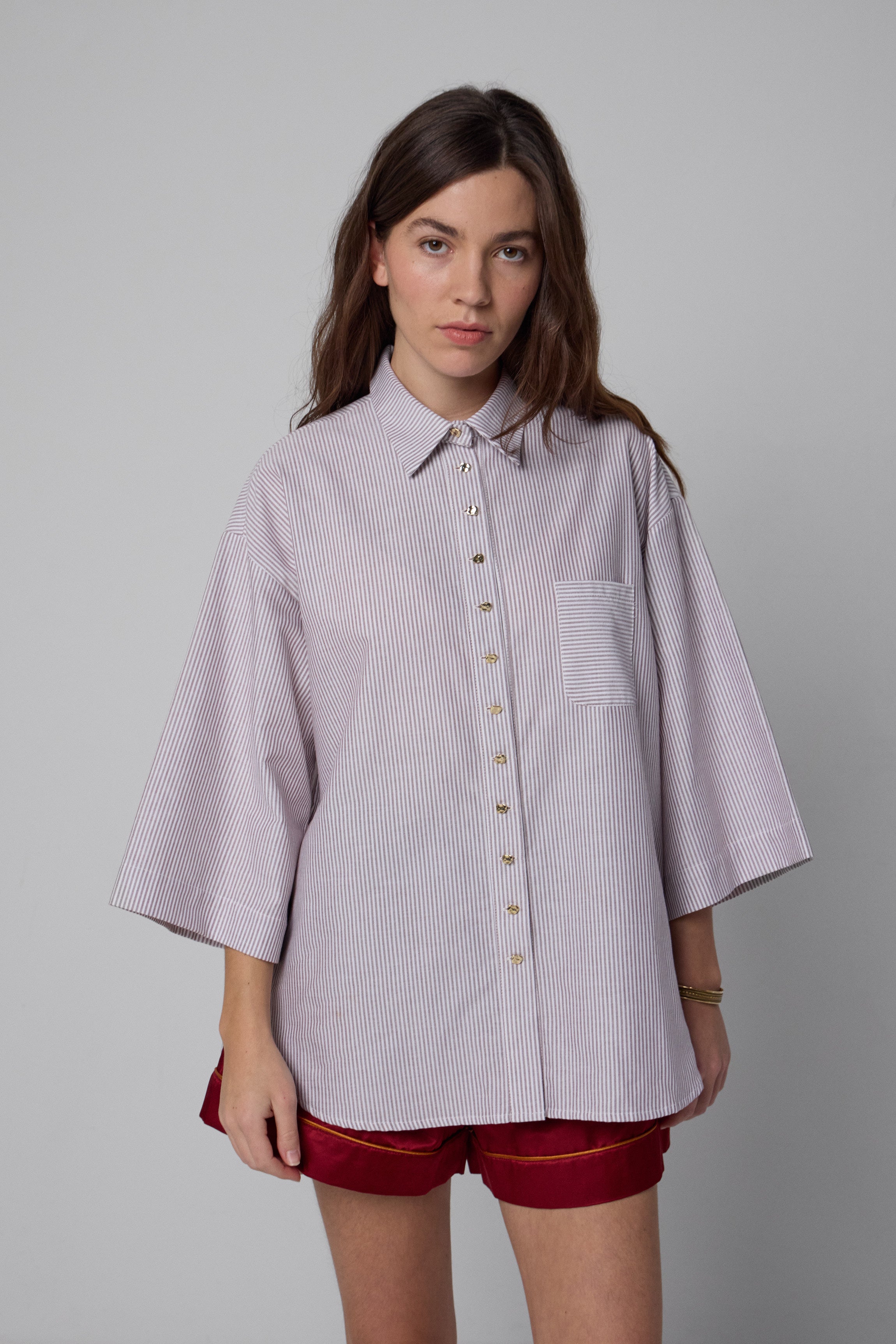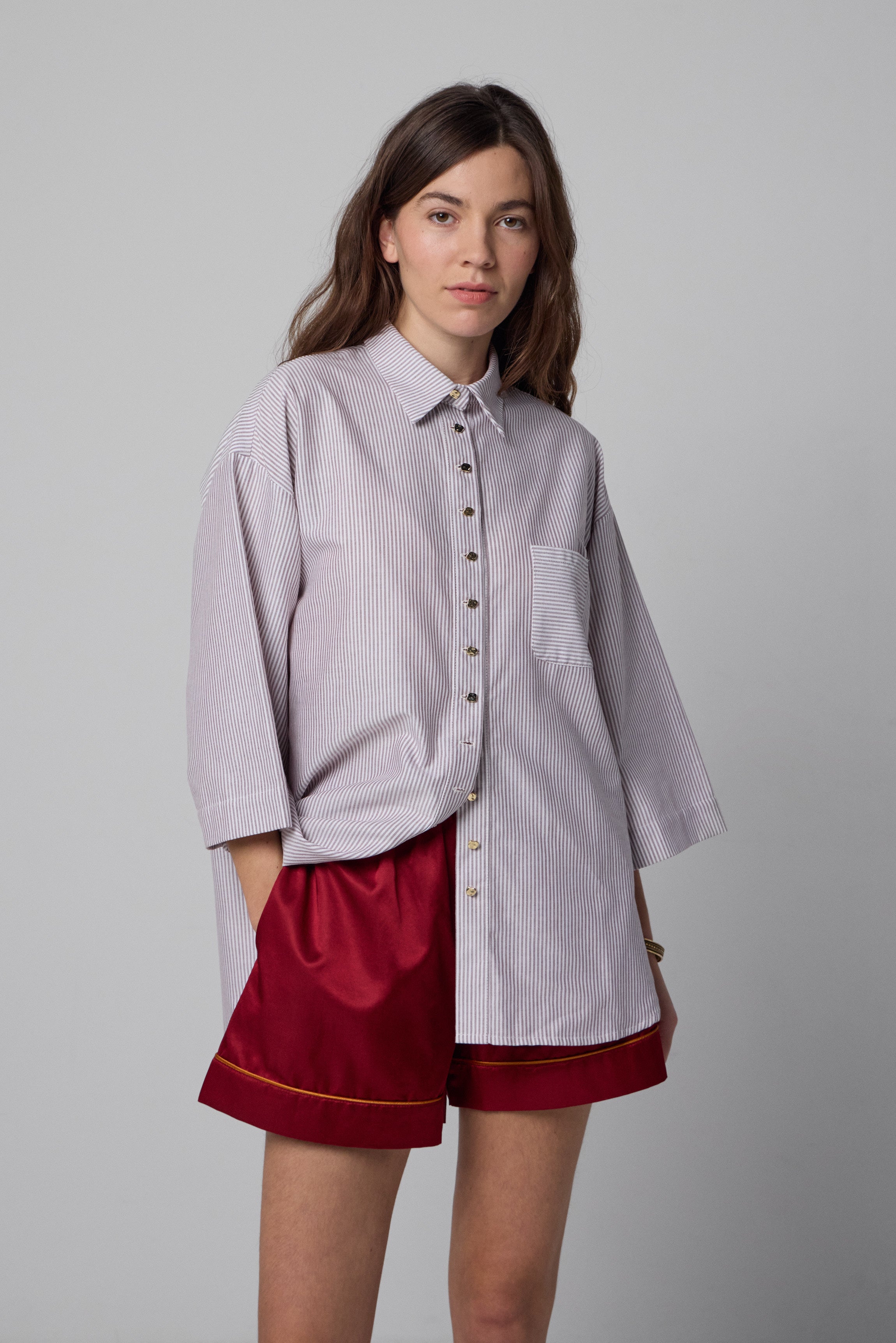 La maxi chemise Byron est un vêtement de nuit moderne et confortable. Disposant de larges manches 3/4, sa coupe oversize, longue et masculine est mise en valeur par des boutons dorés pour une touche d'élégance tout en subtilité. La chemise Byron comporte également une poche plaquée sur le côté et une plaque en métal doré estampillée Charmée Paris. Versatile, cette pièce réalisée 100% en coton au toucher doux à fines rayures, se porte à l'intérieur comme à l'extérieur pour un style "effortless" à la parisienne. Afin de prolonger la durabilité de votre vêtement, nous préconisons un lavage doux, sur l’envers et de préférence fermé afin de préserver au mieux toutes les fournitures en métal et cordons. |