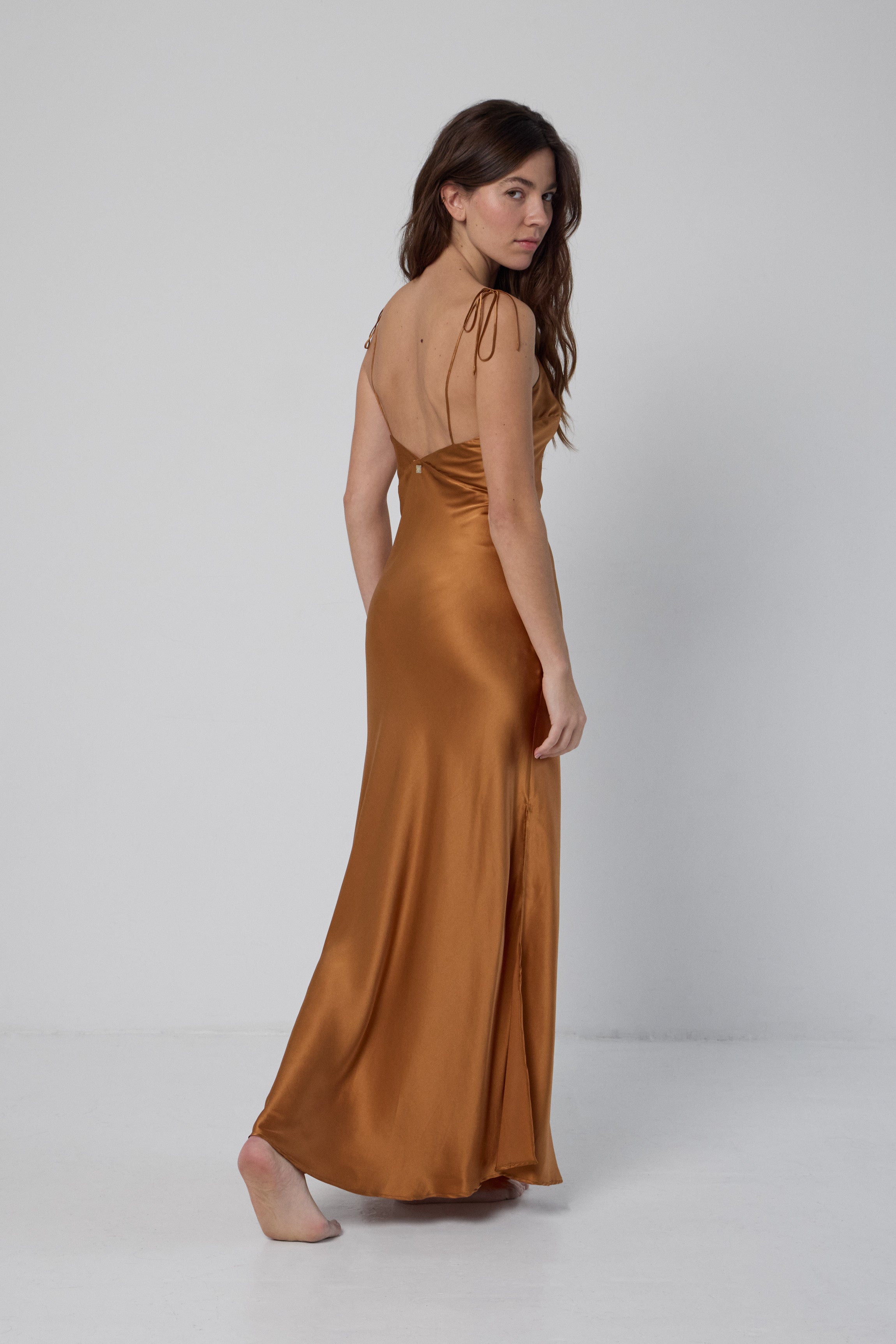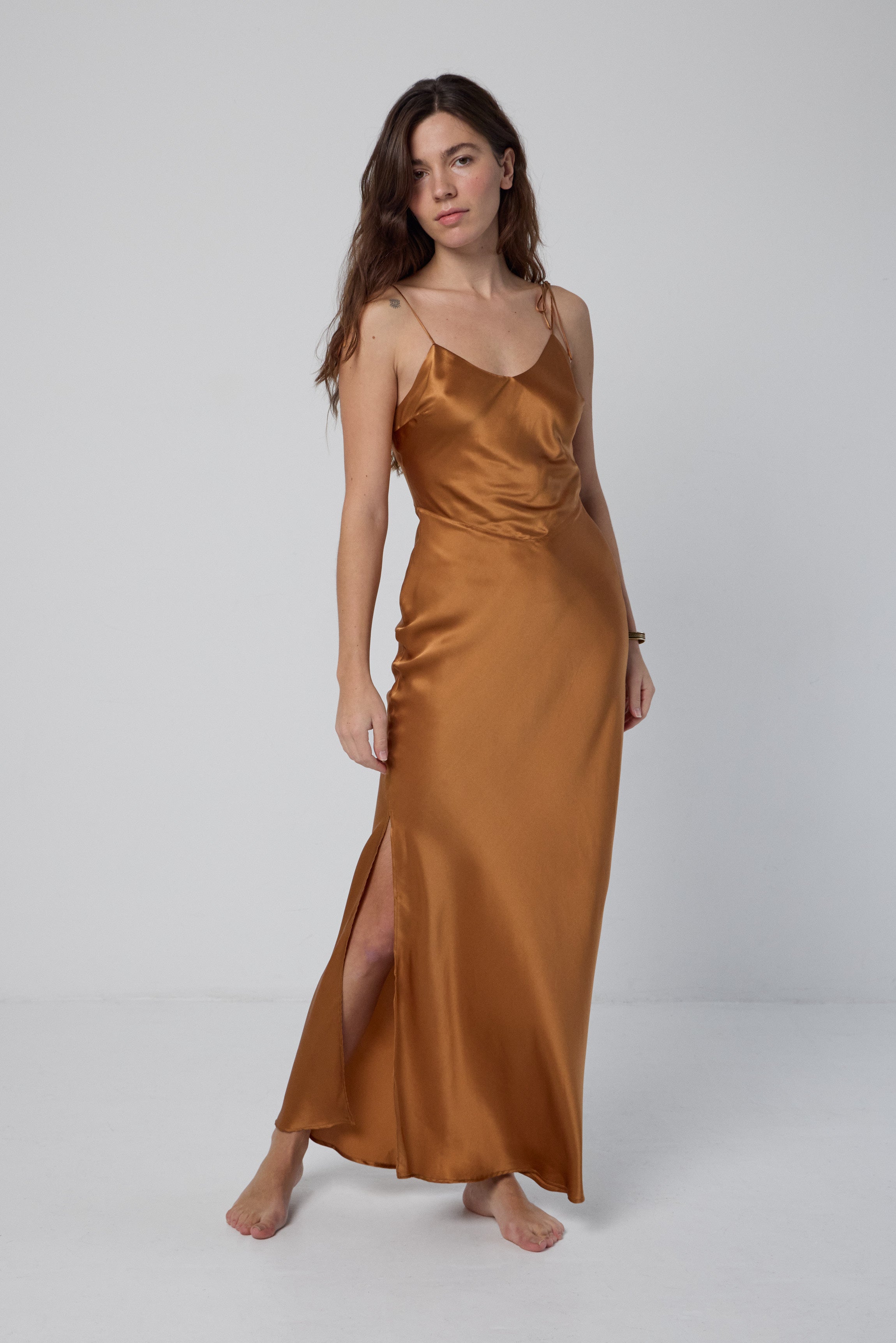 La nuisette longue Barbara comporte une fente sur le côté pour dévoiler les jambes tout en subtilité et un dos plongeant pour un look résolument féminin. Elle s'enfile facilement grâce a son zip placé sur le côté et dispose de bretelles réglables par un nœud la rendant parfaitement ajustable. La robe de nuit Barbara est également dotée d'une plaque en métal doré, estampillée Charmée Paris. Versatile, cette nuisette se porte à l'intérieur comme à l'extérieur pour un style chic à la française.