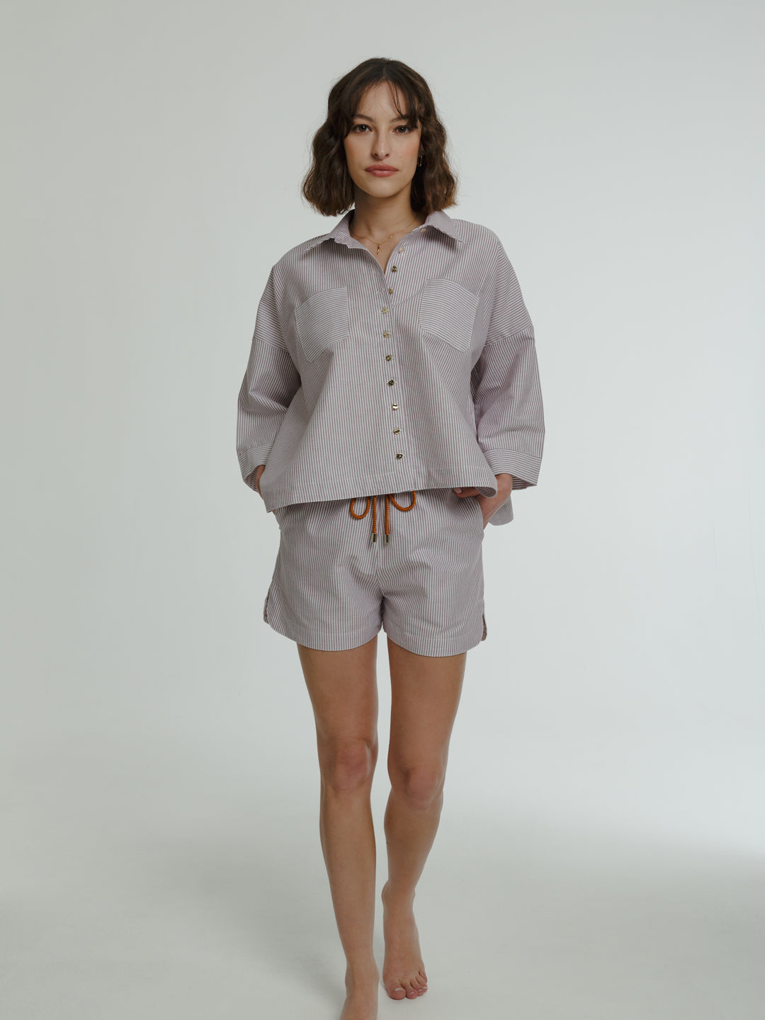 Le mini short Bobby est un vêtement de nuit moderne et confortable. Sa coupe courte est associée à une taille haute élastiquée, réglable par un cordon satin aux oeillets et embouts dorés, afin de pouvoir l'ajuster. Ses bords sont arrondis pour une finiton parfaite. Pour lui conférer un aspect pratique, ce bas d'intérieur dispose de poches latérales. Le bas Boby est également dôté d'une plaque en métal doré, estampillée Charmée Paris. Cette pièce réalisée 100% en coton au toucher doux à petits carreaux, s'accorde parfaitement à nos chemises Byron et Brighton pour un style casual chic. Afin de prolonger la durabilité de votre vêtement, nous préconisons un lavage doux, sur l’envers et de préférence fermé afin de préserver au mieux toutes les fournitures en métal et cordons. |