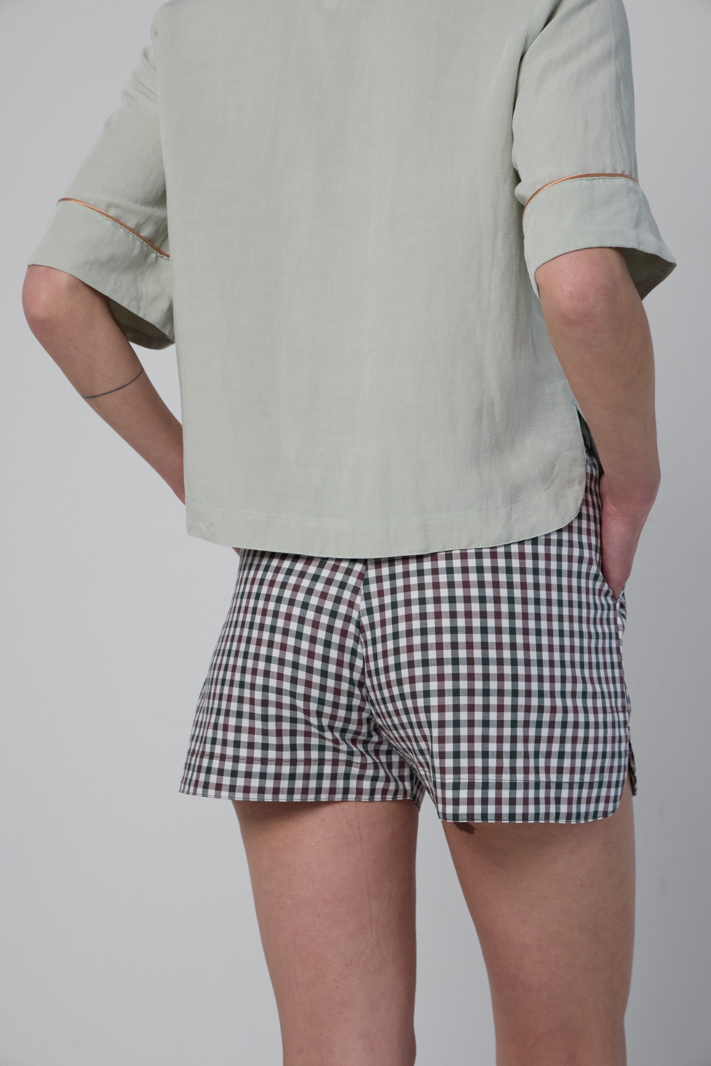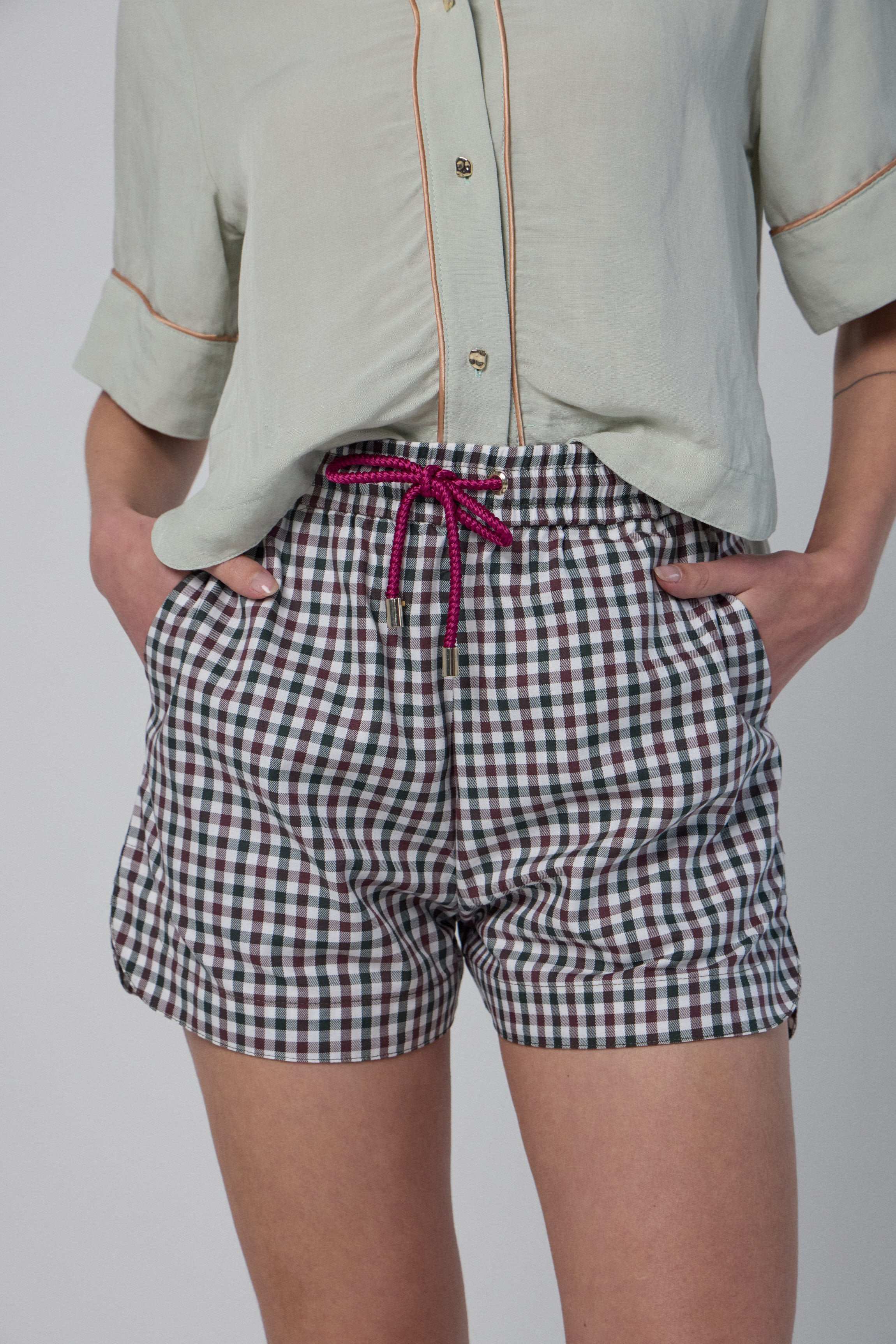 Le mini short Bobby est un vêtement de nuit moderne et confortable. Sa coupe courte est associée à une taille haute élastiquée, réglable par un cordon satin aux oeillets et embouts dorés, afin de pouvoir l'ajuster. Ses bords sont arrondis pour une finiton parfaite. Pour lui conférer un aspect pratique, ce bas d'intérieur dispose de poches latérales. Le bas Boby est également dôté d'une plaque en métal doré, estampillée Charmée Paris. Cette pièce réalisée 100% en coton au toucher doux à petits carreaux, s'accorde parfaitement à nos chemises Byron et Brighton pour un style casual chic. Afin de prolonger la durabilité de votre vêtement, nous préconisons un lavage doux, sur l’envers et de préférence fermé afin de préserver au mieux toutes les fournitures en métal et cordons. |