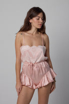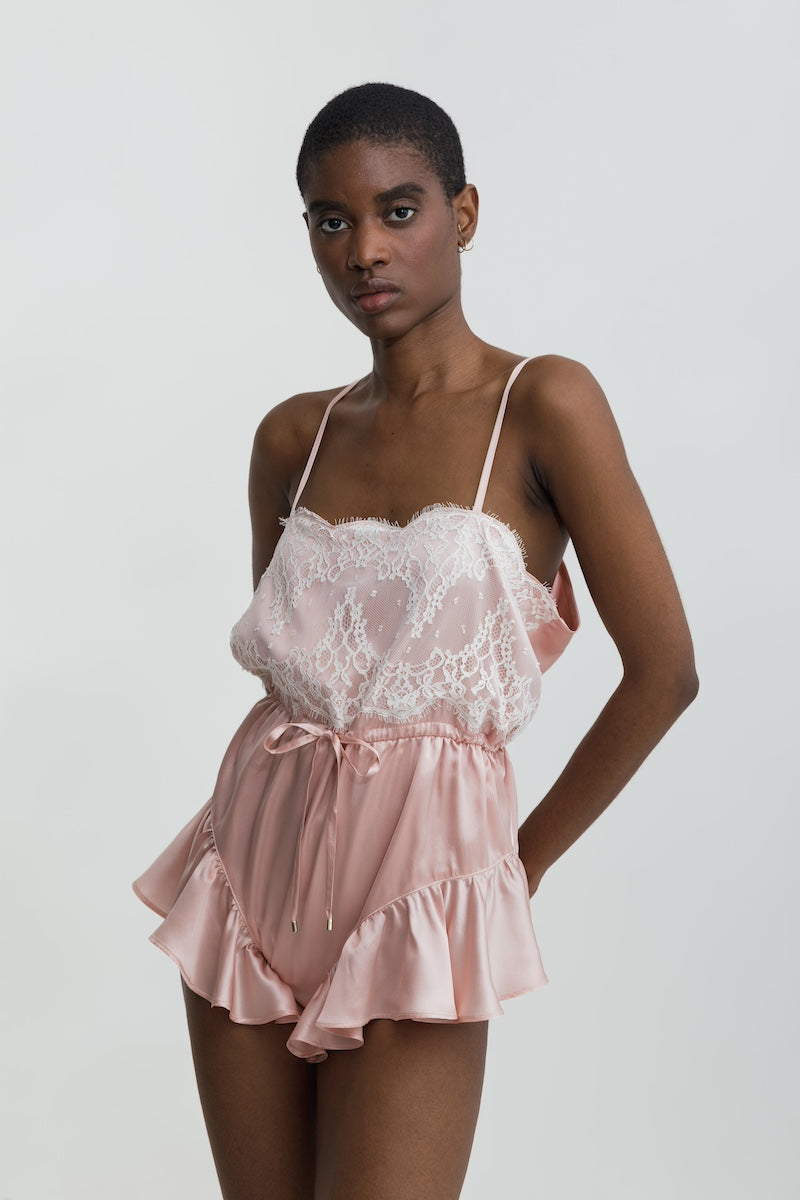 La combishort Bella est une lingerie à la fois douce et sensuelle grâce à sa compositon en 100% soie et dentelle.